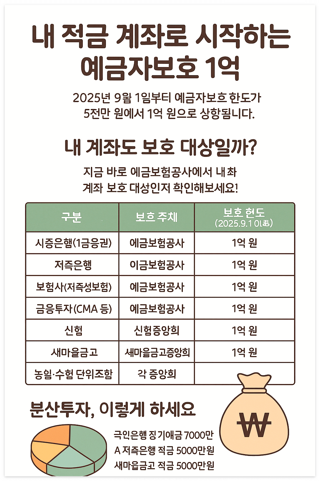 2025년 9월 1일부터 예금자보호한도가 5천만 원 → 1억 원으로 상향