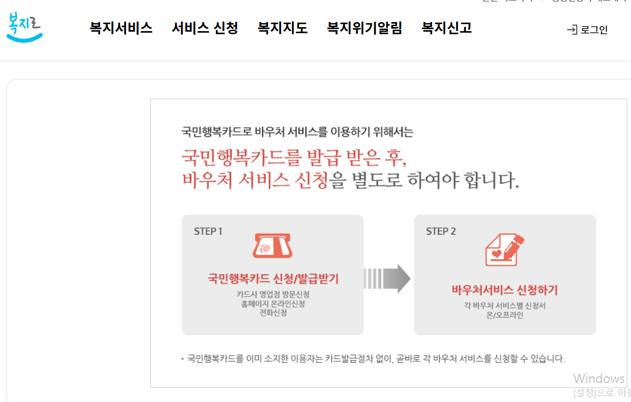 반드시 복지로에서 바우처 사용 카드를 등록하는 과정이 필요합니다.