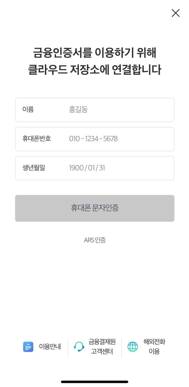 ② 본인인증 페이지 – 공동인증서 또는 카카오 인증서 선택