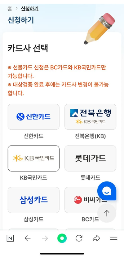 등록할 카드사를 선택합니다. 본인 명의의 사업자 관련 카드만 가능합니다.