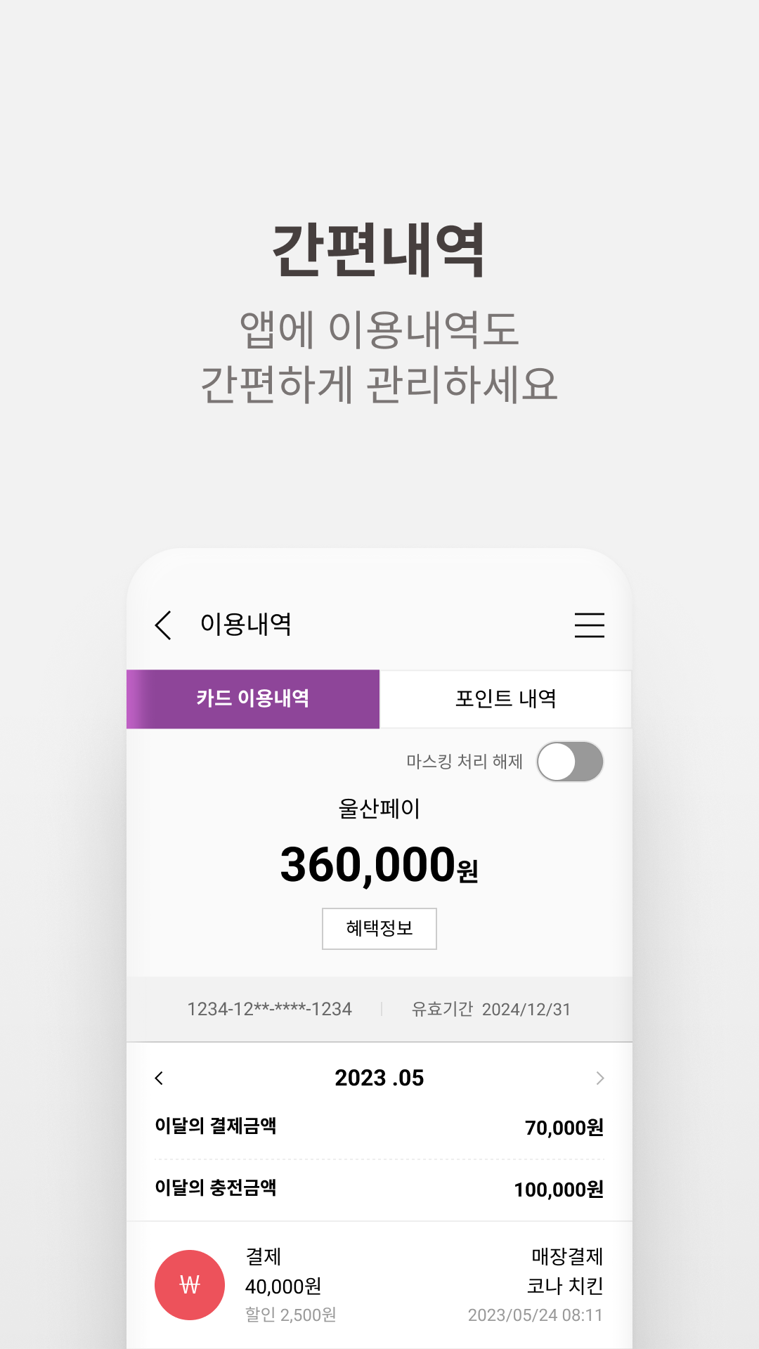 충전이 완료되면 실물 카드 결제 시 자동으로 충전금이 사용됩니다.