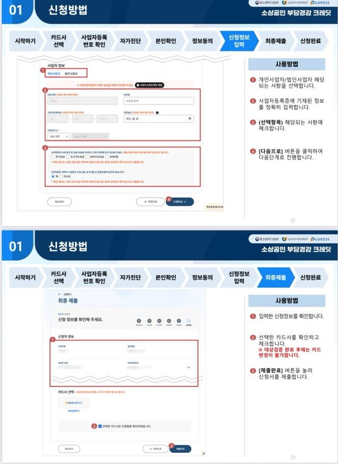 부담경감 크레디트 단계별 온라인 신청 절차